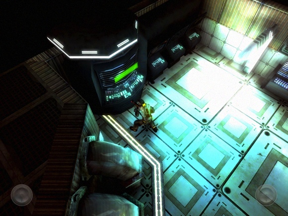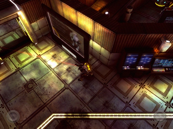 По геймплею это классический шутер в изометрической проекции, управляемый двумя виртуальными джойстиками. Один из них отвечает за движение персонажа, второй — за стрельбу и ее направление. Безымянный главный герой появляется на безымянной военной базе будущего и тут же оказывается атакован «злыми ботами». Среди них есть некие летающие механические твари, стреляющие электрическими разрядами, имеются бомбы на паучьих ножках (подбегает к персонажу и взрывается) и шагающий робот с ракетницей.