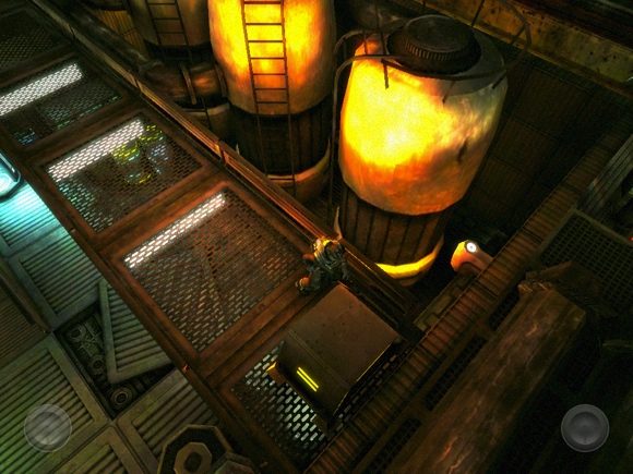Но есть один момент, на который обращают внимание скриншоты технодемки в App Store — там явно виден эффект, который я не заметил на iPad и iPhone. Это Depth of field (DOF), или ГРИП (глубина резко изображаемого пространства или глубина резкости). Камера четко сфокусирована на уровне игрока, а зоны выше и ниже мягко размыты — очень классный и технологичный эффект.