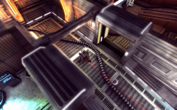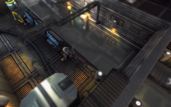 Игроку предлагается пробежаться по этой базе, отстреливая по ходу злых ботов и решая простенькие задачки типа «найди рубильник или даже сразу два, которые откроют дверь». Все очень просто и незатейливо, но в данном случае важнее показать пользователям, что же умеет новый движок, а умеет он немало.