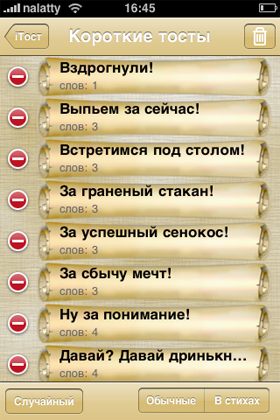 Собираясь на вечеринку или семейное торжество, всегда хочется блистать искрометным юмором и дарить окружающим только положительные эмоции. Но не все могут похвастаться достаточным запасом анекдотов “к месту” и хорошей дикцией (особенно после ста грамм коньячку). На выручку готова прийти программа из App Store – iТост, которая с легкостью поможет разрядить обстановку и представит вас с самой лучшей стороны.