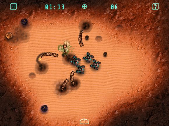 Как это должно работать в теории. Мы нажимаем на любое место на экране, отдавая команду самоходам на начало передвижения по заданному направлению. Если на этом направлении или рядом с ним закопался червь, то сразу после его обнаружения мы дважды нажимаем в произвольном месте, переключаясь в режим стрельбы, а затем теми же нажатиями направляем турели в направление инопланетной угрозы. Как только черви будут ликвидированы, мы возвращаемся в режим передвижения и едем в другой уголок карты. Реальная ситуация безмерно отличается от вышеописанного.