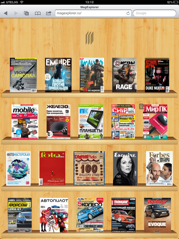 Уникальность его заключается в том, что, заходя на сайт magexplorer.ru, через браузер своих яблочных гаджетов, вы оказываетесь на полках с полиграфической продукцией, которую скачиваете через файлообменники. Это по сути является трекером, но заточеным special for iOS.