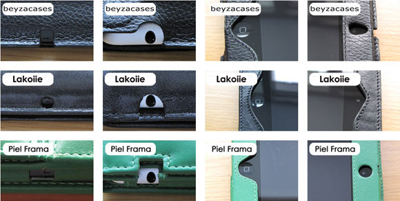 Разница в вырезах сугубо эстетическая. Что касается субъективных ощущений, то очень понравилась реализация технологических отверстий у Beyza и Lakoiie. Глубокие ниши чехла Piel Frama, на мой взгляд, выглядят грубовато и несколько архаично.