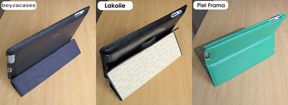 Все из представленных чехлов трансформируются в подставки, но механизм трансформации различается. Чехол от Beyzacases использует тот же принцип, что и оригинальный “коврик” – крышка сворачивается в треугольник, и гаджет можно либо поставить, либо положить на стол с небольшим наклоном, что будет удобно, например, при работе с текстами. Устойчивость в вертикальном положении средняя. Lakoiie предлагает более традиционный способ, но с интересной доработкой – на задней стороне чехла и на крышке, под “язычком” с логотипом, размещены “кнопки”. Крышка, сгибаясь, подпирает обратную часть чехла и фиксируется одной из “кнопок”. В вертикальном виде мы получаем два довольно отличимых угла наклона. Устойчивость хорошая. В горизонтальном виде тоже два положения, но они практически неотличимы. А вот у чехла Piel Frama сгибается задняя часть. Идея хорошая, но реализация, на мой взгляд, неудачная. Какой-либо ощутимой фиксации просто нет. “Подставка” в вертикальном положении держится более-менее сносно, если опытным путем найти удачный угол наклона. Горизонтальное положение не сильно годится для набора текста либо аналогичных действий – чехол ощутимо “пружинит” буквально от каждого касания.