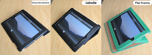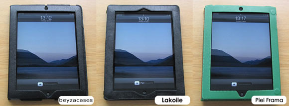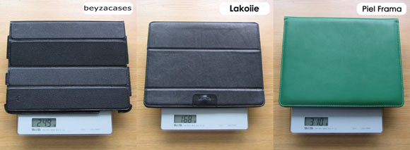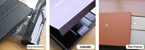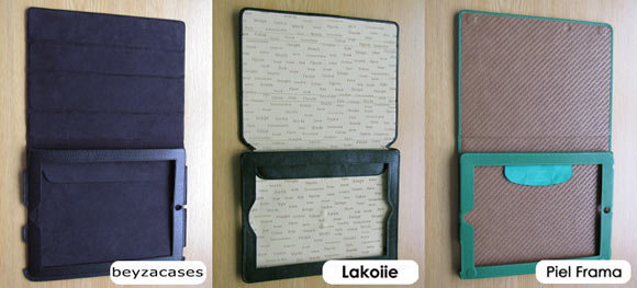 Теперь немного о внешнем виде чехлов. Обложки чехлов Beyza и Lakoiie визуально разделены на отдельные сегменты. Чехол Piel Frama, с монотонной гладкой поверхностью, выглядит откровенно скучно. Вот вид обложек, закрывающих экран (слева направо Beyzacases, Lakoiie, Piel Frama):