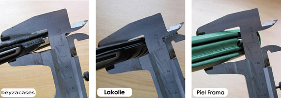 Чехол Beyza добавит гаджету 249 грамм. Чехол Lakoiie – самый легкий, и может похвастаться весом в 168 грамм. А Piel Frama стал «лидером» в тяжелом весе – результат в 310 грамм откровенно впечатлил… В таком же порядке выстроились и результаты замеров толщины.