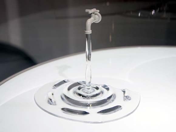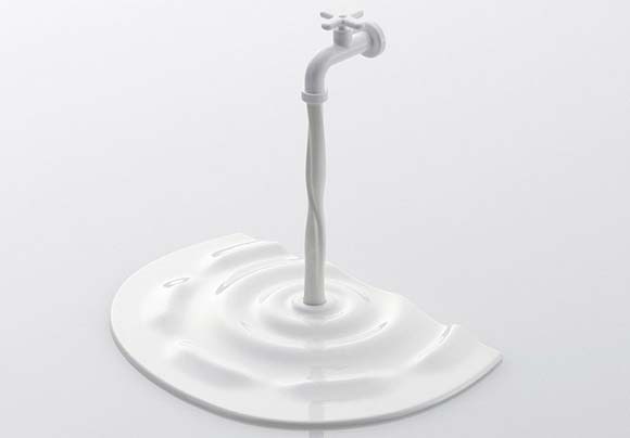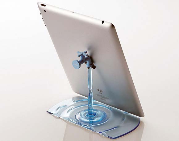 Японский дизайнер Nendo предложил «водопроводную» тематику для оформления рабочего пространства. Как вам лужа воды на аудиосистеме, разлитая из врезанного в стену крана? Но ничего, дорогая техника продолжит свое полезное существование – вода пластиковая, а кран приставной. Это всего лишь оригинальная подставка Nendo JAGUCHI под iГаджеты. Аксессуар не выполняет никаких дополнительных функций вроде синхронизации или воспроизведения звука, просто симпатичная подставка.