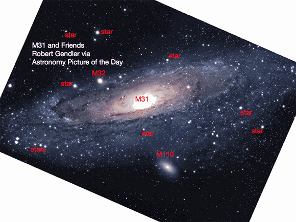 Автор мог бы отговориться, мол, туманность Андромеды никому не принадлежит, что хочу, то и использую. Но нас так просто не проведёшь. Суть в том, что Apple специально подготовила фотографию с телескопа для размещения на обоях. Купертиновцы удалили несколько звёзд и, походя, стёрли целую галактику (M110, спутник Андромеды):
