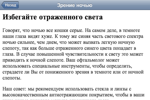 В этом разделе присутствует разнообразная информация о вашем зрении. Какая именно вы можете увидеть на скриншотах ниже.