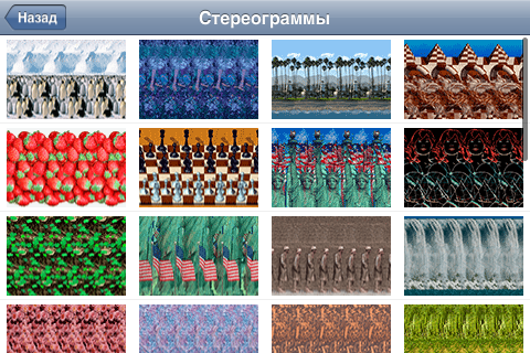 Тесты стандартные. Такие, как астигматизм, угол зрения, цветовое восприятие… Ну а в блоке “Досуг” обычные стереограммы, оптические иллюзии и новые для меня стерео пары, стерео анаглифы.