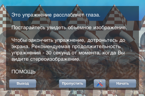 Vision немного поможет нам в этом. Первое, что бросилось в глаза – это то, что приложение полностью на русском языке. Создано оно было для того, чтобы помогать вам расслаблять и тренировать свое зрение.