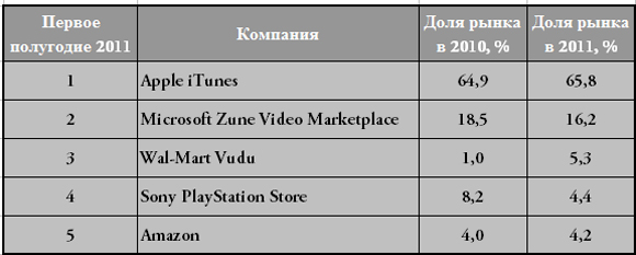 По данным исследований, проведенных IHS Screen Digest Media Research, iTunes улучшил свою и без того ведущую позицию, в рыночной доле продаж фильмов онлайн за 2011 год. Этот рост не был неожиданным для купертиновцев, поскольку «яблочный» сервис успешно развивается. Но в сравнении с тенденцией падения спроса на данный вид услуги в 2010 году, сегодняшние итоги исследования не могут не радовать.