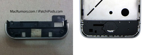 На этой антенне мы видим 2 стыка в нижней части корпуса, соответственно, состоит она из 2-х частей. Такая схема отличается и от GSM-, и от CDMA-версии iPhone 4 (в первой было 3 стыка, во второй — 4). Второе существенное отличие связано с кнопкой Home. Проинспектировав фотографии, Скотт Хэд из iFixit отметил, что в виденных ранее версиях под механизм Home была отведена специальная выемка: