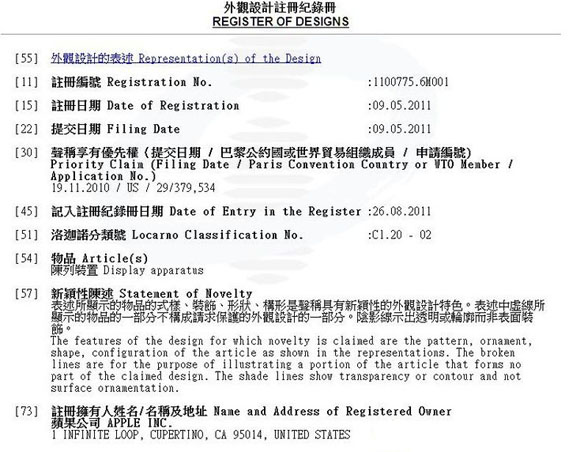 В отличие от американских патентов, в китайских фигурируют имена всех дизайнеров, работавших над данными продуктами [patent].