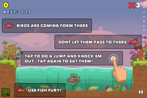Fish Fury предлагает нам сыграть за весьма агрессивную пиранью, на досуге промышляющую ловлей пролетающих мимо птиц.
