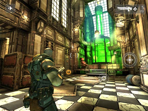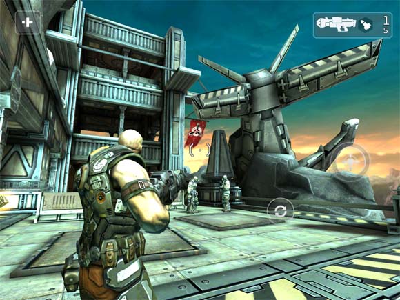 Очень порадовало управление. В шутере реализованы D-Pad и свободная зона для обзора и стрельбы. В принципе, все это мы уже видели в той же Battlefield:BC2, но здесь есть отдельная кнопка для обзора с одновременной стрельбой, что позволяет не сбивать прицел лишними тапами. К тому же, все элементы управления можно разместить на экране как душе угодно, добиваясь комфортной игры в любых условиях. Неудобно сделана только смена оружия в виде выпадающего списка – в пылу сражения он отнимает драгоценные секунды.
