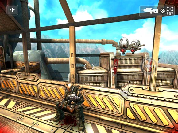 Однако мы совсем отвлеклись от главной прелести – графики. Лежащий в основе игры движок Unity мы уже видели в действии и сомнений в его возможностях, думаю, нет ни у кого. Благодаря новой технологии, Shadowgun может похвастаться одной из самых красивых картинок в App Store. С первых минут глаз радуют неплохо нарисованные уровни и детальные текстуры с кучей мелких элементов. В принципе, за всю красоту игры как раз и отвечают одни лишь текстуры. Здесь нет и в помине теней, динамического освещения, “глубины резкости” и прочих водных поверхностей, которыми может похвастаться Unity. Но и без этого игре можно простить очень многое из-за одной лишь графической составляющей.