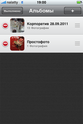 В самом теле альбомов управление просто «как два пальца». Кнопка «редактировать» позволяет привычным образом сортировать альбомы, удалять и создавать новые.