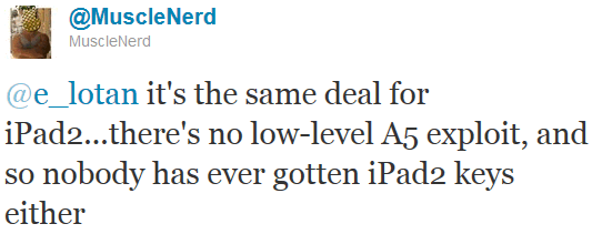 Если кто-нибудь сможет получить низкоуровневый доступ к процессору A5 и «выдернуть» шифровальные ключи файловой системы, то файлы Siri можно будет банально скопировать, не нарушая при этом авторские права. Очевидную возможность порадовать пользователей iPhone 4 и одновременно «умыть руки» омрачает один факт — до сих пор никому из хакеров не удалось получить доступ к A5 на нужном уровне и уж тем более получить шифровальные ключи системы. Из-за этого выход отвязанного джейлбрейка для iPad 2 и iPhone 4S может затянуться на месяцы, вплоть до выхода третьего поколения купертиновского планшетника. Что ж, всё к лучшему.