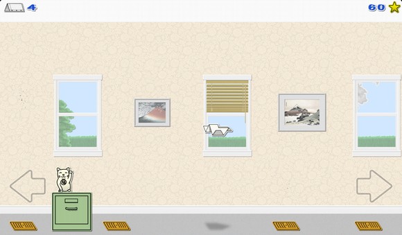 Чтобы подогреть интерес в прохождении уровней, в труднодоступных местах располагаются бонусы-звёздочки, сбор которых увеличивает итоговый счёт. Само деление на уровни довольно схематично: каждый новый этаж дома привносит новые испытания на нашу голову. Начинается всё с банально мешающихся полок, затем появляются почему-то опасные розетки, вечно мешающиеся шары и другие предметы, норовящие спустить нас с потолка на пол. Как только все жизни будут потрачены, игра заканчивается полностью, и начинать надо будет с самого-самого первого этажа.