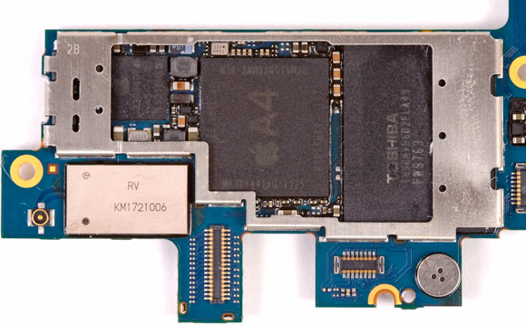 • Новая маркировка (ого!) на процессоре Apple A4 — VT1K3441AQ против прошлогодней K4X2G643GE;