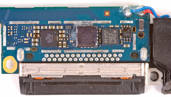 • Чип 2129 33DH рядом с гироскопом, похоже, монтирован на такой же подложке, как у гироскопа из iPod touch 4-го поколения.