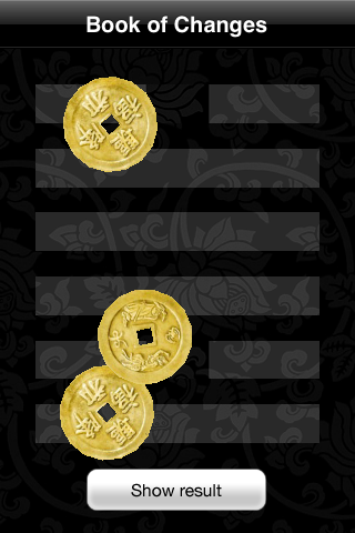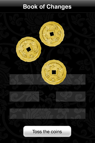 Для гадания от пользователя требуется встряхнуть телефон шесть раз, тем самым построив гексаграмму, одну из шестидесяти четырех возможных. Линии причудливого узора складываются из положения монет. Как упадут, так и судьба ляжет. Покидали монеты, прочитали смысл всего этого, далее действуем по обстоятельствам.