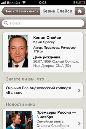 О плохом. На сайте КиноПоиска довольно сильная социально-сетевая составляющая — помимо рецензий, это ещё и пользовательские рейтинги, и рекомендации, и развёрнутая статистическая система… Приложение лишено даже личной страницы. А как же троллинг общение в комментариях? И второе — нет версии для iPad. Можно спорить, какое iOS-устройство считать “главным”, но планшетник ведь больше подходит для просмотра фильмов, разве нет?