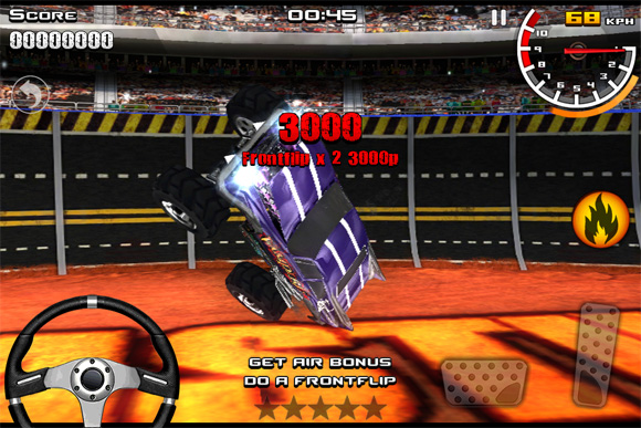 MEGASTUNT Mayhem Pro находится где-то рядом с описанной выше игрушкой по жанру, но трюки предстоит совершать на джипах-монстрах. Управление удобное, графика красивая, есть поддержка Retina и все это — бесплатно! По системе прокачки и оформления, в целом, игра напомнила Death Rally. Кстати, она также универсальна.