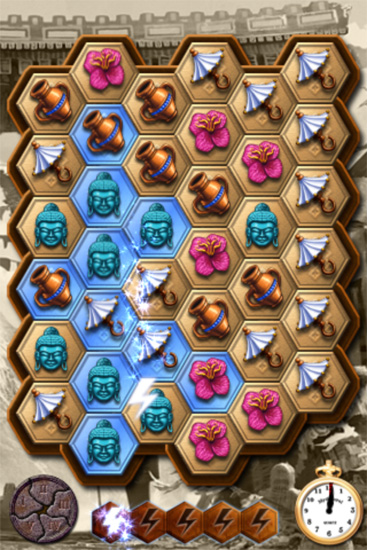 Azkend корнями уходит в жанр три-в-ряд, но с некоей вариацией: чтобы уничтожить одинаковые фигурки надо провести по ним пальцем. Игра красивая и она затягивает. По своей механике очень напоминает 4 Elements HD. Жаль только, что нет поддержки Retina, но и так она смотрится неплохо.