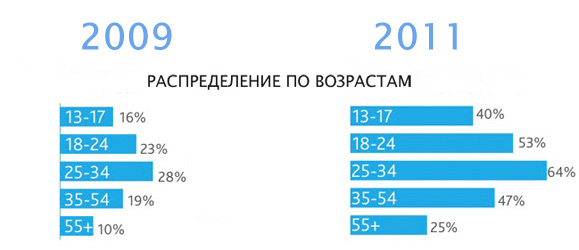 В докладе также отмечается, что использование мобильного интернета выросло на 45% с 2010 года, и что удивительно, такой рост наблюдается за счет юного возраста пользователей.