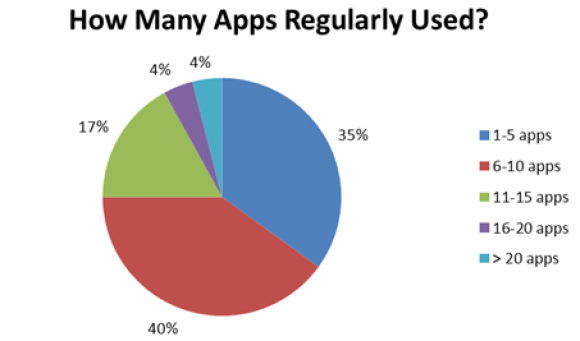 Хотя количество установленных прог внушительно, регулярно используются лишь несколько из них. 35% юзают от 1 до 5 приложений, 40% от 6 до 10, и только 4% часто пользуются более чем 20 программами.
