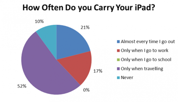 52% берут его исключительно в дальние поездки, 21% таскают его с собой ежедневно, куда бы они ни шли, и лишь 17% пользуются им как рабочим инструментом.