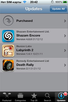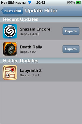 …Вуаля! Labyrinth 2 оказался в списке скрытых и более не отображается на закладке Updates в App Store