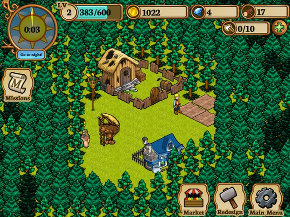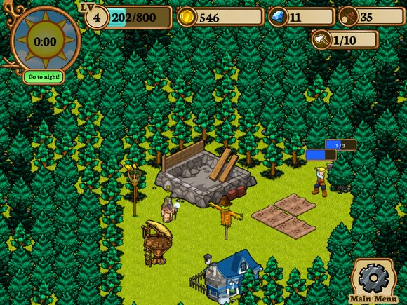Игра начинается посередине огромной лесополосы. В нашем распоряжении строго ограниченные ресурсы, ветхая хибара, лопата, топор и надоедливый старикашка, регулярно загружающий нас заданиями вида создай-собери-убей. До захода солнца мы должны успеть вырубить как можно больше деревьев (ресурс 1), заработать как можно больше денег (ресурс 2), построить на них что-нибудь на территории участка, посеять семена и собрать урожай. Сам урожай приносит не только деньги, но и перерабатывается в зелья, которыми мы обязаны разуплотнять врагов ночью. Процесс этот нетривиален – пара нажатий на экран приносят мир и спокойствие до следующего заката.