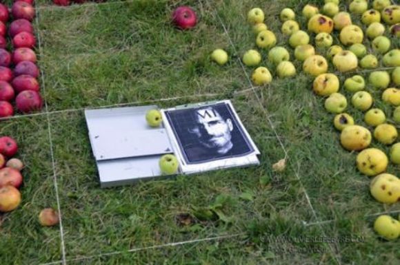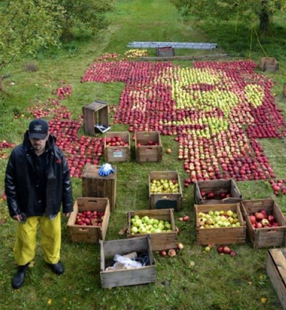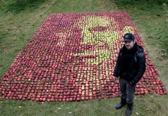 В честь памяти Стива Джобса поклонник техники Apple, актер Оливье Лефевр, осенью прошлого года создал его рукотворный портрет из натуральных яблок.