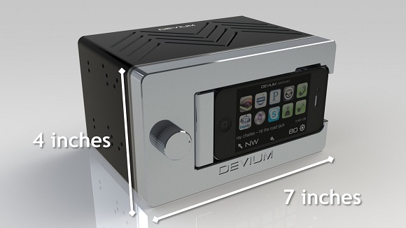 Devium Dash представляет собой замену стандартной автомагнитоле, но с минималистичным дизайном и iPhone во главе. Все устройство состоит из 2 частей: базового блока с усилителем и креплениями для монтажа, и алюминиевой передней панели с регулятором громкости и откидным креплением для смартфона.