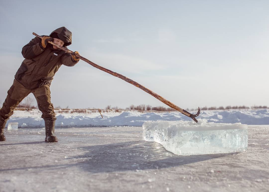 Местные мужики зимой заготавливают лёд – выкалывают его прямо из озера.