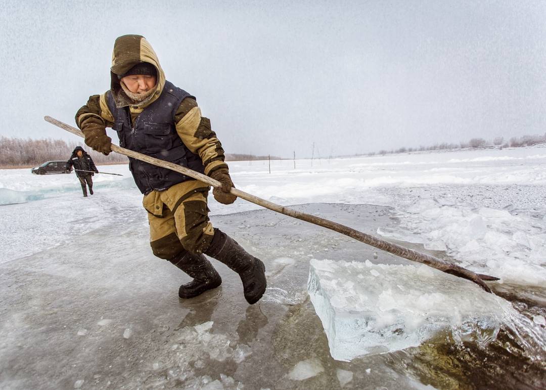 Во многих деревнях и селах Якутии отсутствует водопровод, поэтому сельчане большими группами выезжают к рекам и озерам, чтобы запастись льдом.
