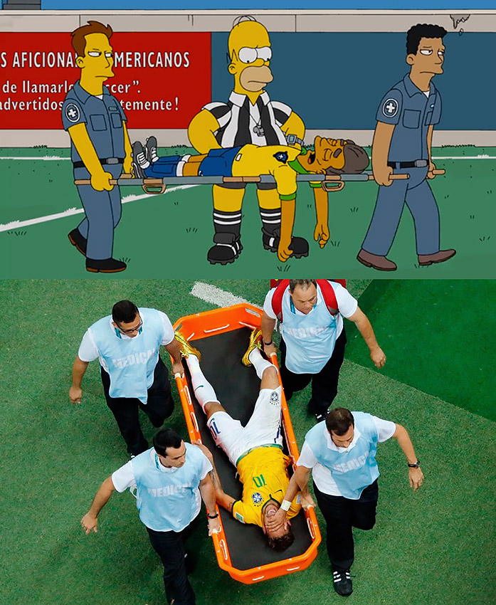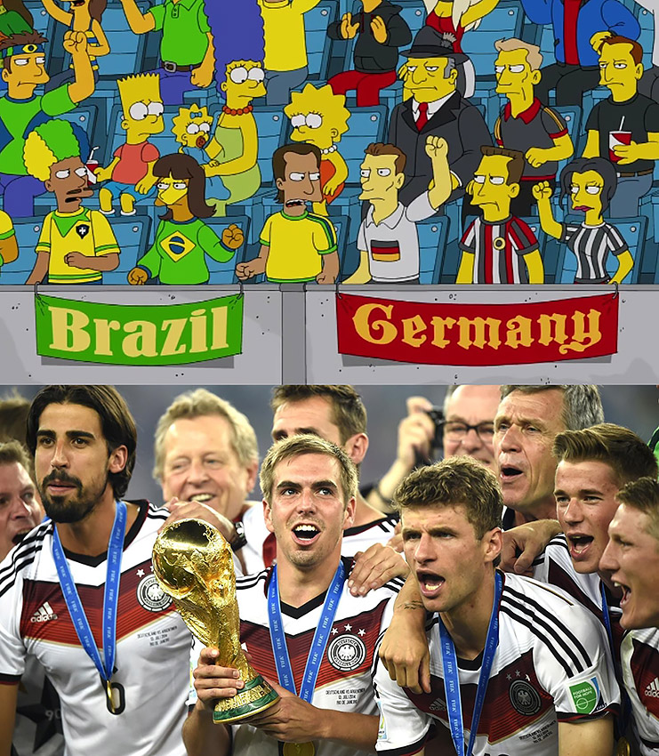 В этом эпизоде Гомер Симпсон становится рефери на чемпионате мира по футболу в Бразилии. Что в мультике, что в действительности Бразилия проиграла Германии.