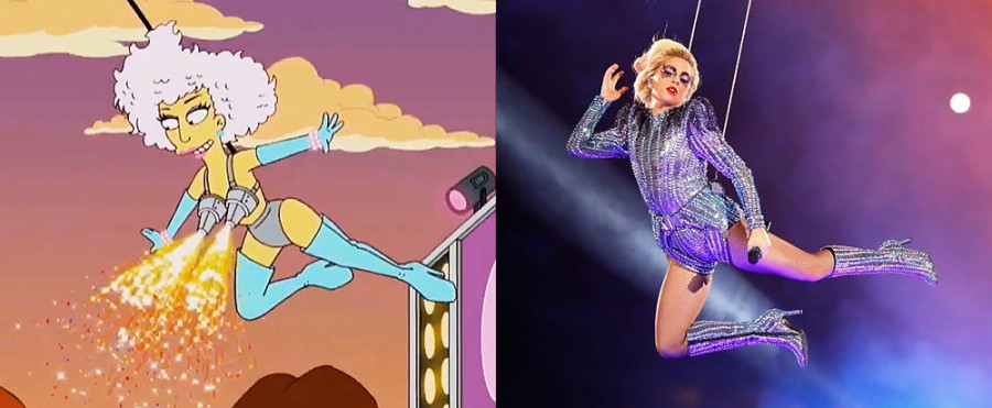 В одной из серий показали, как Леди Гага выступила на тросах в перерыве финальной игры Национальной футбольной лиги (НФЛ), она же Супербоул.