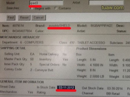 Одна из крупнейших мировых сетей гипермаркетов, Bestbuy также подготовилась к началу продаж iPad 3. В базе ритейлера найдена масса сторонних аксессуаров для нового планшетника, поставки которых на места продаж начнутся с 11 марта, спустя четыре дня после официальной презентации Apple. Приставки «HD» в этот раз не наблюдается, так что не стоит делать преждевременные выводы относительно названия нового поколения «яблочных таблеток». [ap]