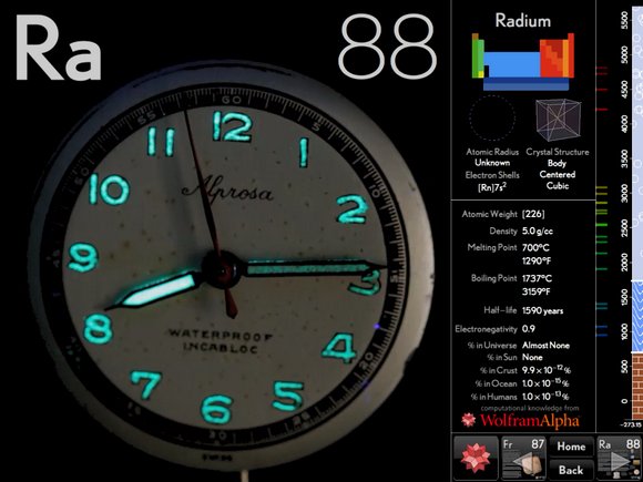 Рядом с текстом — огромная масса 3D-фотографий. Причём фотографий не столько самого элемента в его чистой природной форме, сколько продуктов, устройств и вообще плодов применения этого элемента в реальной жизни. Общее количество таких визуальных примеров подсчитать крайне сложно. Точно не меньше пяти ко всем известным элементам. Многие примеры хорошо откладываются в памяти и улучшают понимание принципов работы окружающего нас мира. Большей частью фактов можно пощеголять в любой компании. Не знаю, как вы, а я не знал, что всего 80 лет назад в США огромной популярностью пользовались напитки с радием и торием, от которых современные счётчики Гейгера приходят в ужас почище показателей закрытой зоны около Припяти. Подобных «интересностей» здесь полно.