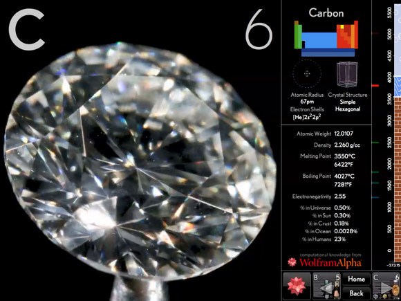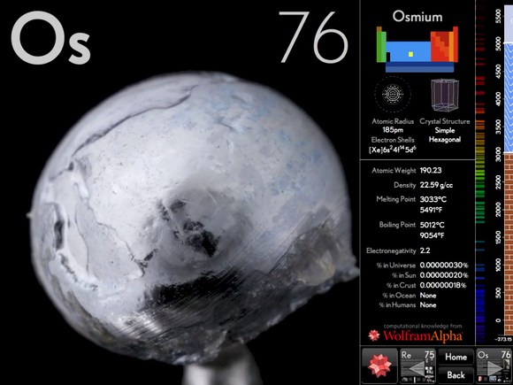 Вес приложений начинается от 1 гигабайта, что уже намекает на относительно малое количество текста. Благодаря аномальному изобилию фотографического контента, эти книги от Touch Press не воспринимаются как обучающие. Более того, вряд ли какая-нибудь из них сильно поможет школьнику или студенту на экзамене. Если вам нужен справочник ювелира, Gems вам не поможет. Ровно как и Solar System не поможет разобраться в научных тонкостях специфических космических процессов. И таблица Менделеева, которой и является The Elements, отличается излишним вниманием к околонаучным деталям.