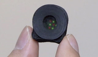 Заметили красные и зелёные точки? Когда вы двигаете стик большим пальцем, фронтальный 0,3-мегапиксельный модуль с помощью специального ПО отслеживает их местоположение и направляет объект (в данном случае — летающую тарелочку) в нужную сторону. При этом подвижной является только верхняя, округлая часть стика, нижняя же крепится к передней панели девайса. Конструкция чем-то напоминает Fling mini, только в роли устройства ввода здесь выступает не дисплей, а камера.