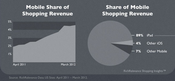 По сравнению с прошлогодними показателями размер дохода от таких сделок вырос в два раза. В 2011 году он составлял менее 2%, в нынешнем – 4,5%. Стоит ли говорить, что и в источнике дохода iPad опережает конкурентов. На его долю приходится 89% дохода от мобильных продаж, на остальные i-девайсы 4% и на другие платформы 7%.