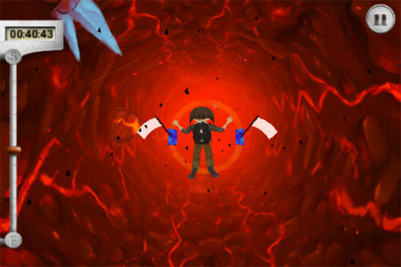 От игрока то и дело требуется корректировать полет горе-летчика наклонами устройства, помогая ему пролететь через 8 различных уровней – от ацтекских руин до внутренностей зверя. Каждый уровень сопровождается уникальными препятствиями: будь то кровожадные птицы в джунглях, длинные щупальца, железнодорожные пути пещеры и прочее-прочее. На каждом шагу одни опасности.
