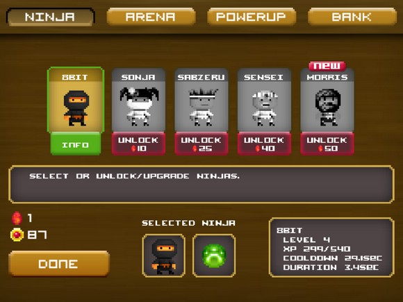 Эпоха ниндзя на iOS безвозвратно ушла год с лишним назад, но игры с такой тематикой всё ещё бодро плодятся и раскупаются в магазине приложений Apple. Но 8 Bit Ninja покупать не надо. Равно как и тратиться на что-либо в этой игре. Она попала в поле зрения случайно – и не разочаровала.