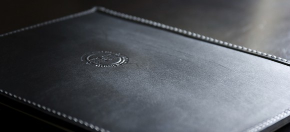 Профессионал по работе с кожей Аттила Акс создал чехол с самым первым логотипом компании Apple Computer Co.. Считается, что лого создал Рональд Уейн, третий со-основатель компании, очень быстро отказавшийся от своей доли в ней. Обшитый кожей кенгуру и красными нитями, чехол существует в единственном экземпляре и поражает детальностью и качеством воспроизведения того самого логотипа Apple: с деревом, яблоком и Ньютоном.