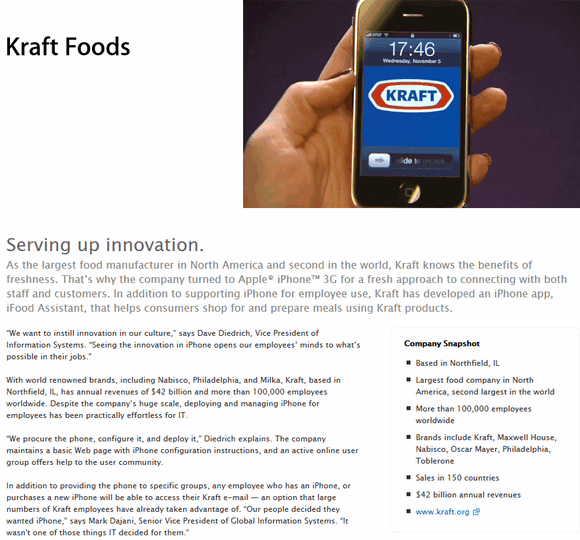 Каждая из почти пяти десятков упомянутых компаний делится подробным планом внедрения iPhone в структуры организации.